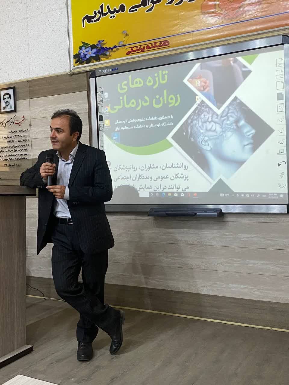 وی در سخنرانی خود ضمن افتتاح رسمی سمینار، از انجمن مطالعات رواندرمانی کردستان به خاطر برنامهریزی دقیق و برگزاری این رویداد علمی تقدیر ویژه به عمل آورد.